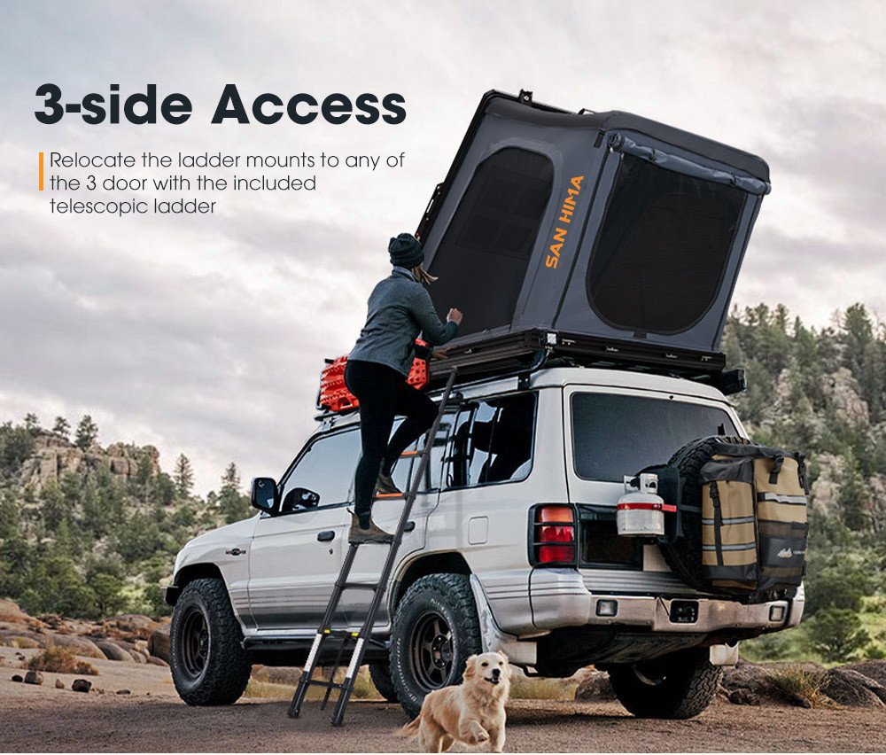 Safe and Sturdy: Our telescopic ladder extends to 2.3m with a 150kg load capacity, and can be hooked at three sides for added flexibility.*NOTE:Always thoroughly dry your rooftop tent after each use,avoid storing it in a damp environment,and ventilate regularly if unused for long periods.