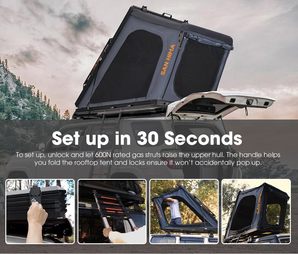 Weatherproof & Durable: The rooftop tent is built to withstand elements, with 420D Oxford & 280GT poly-cotton that boast 3,000mm waterproof rating & UV 50+ protection.