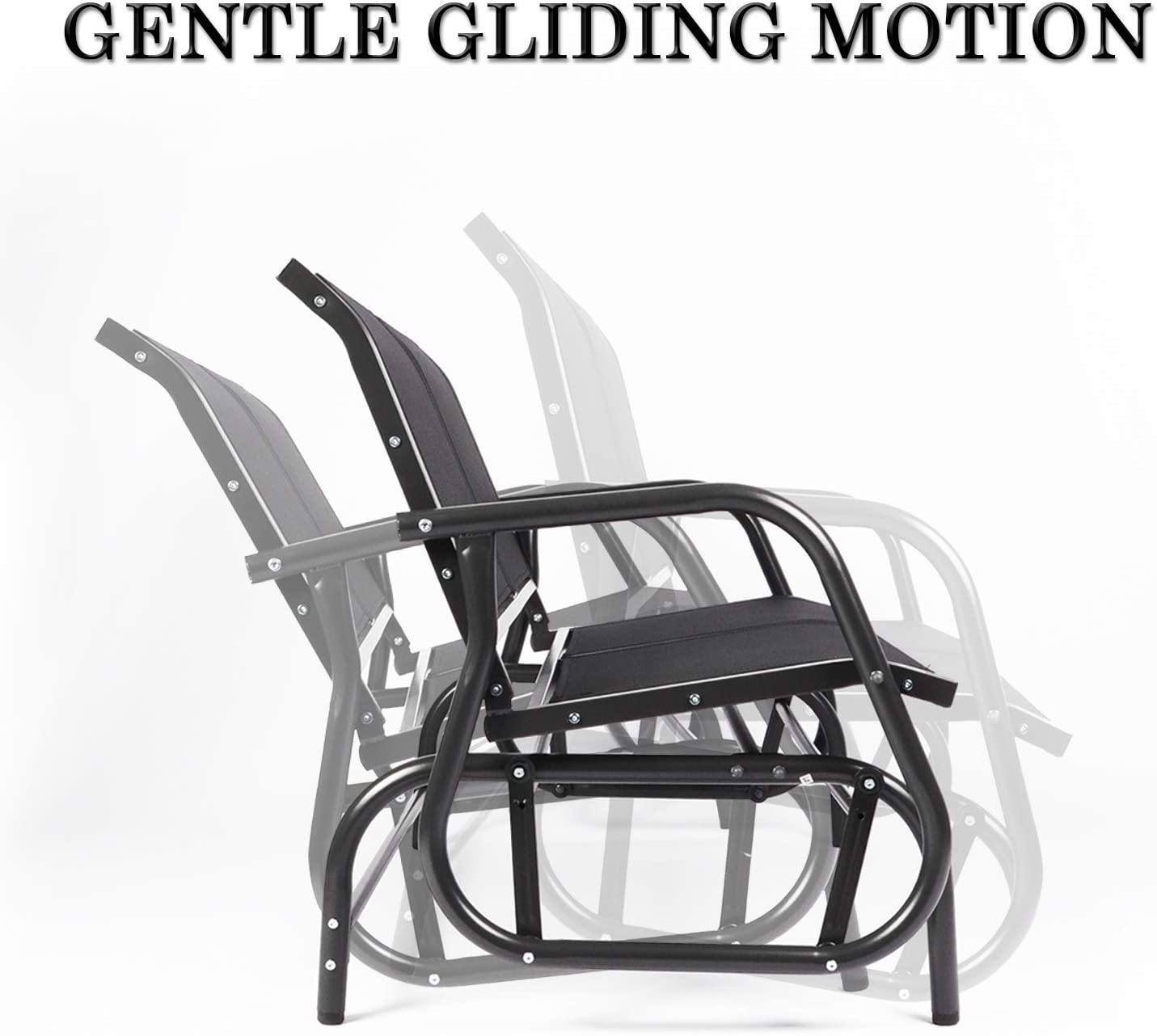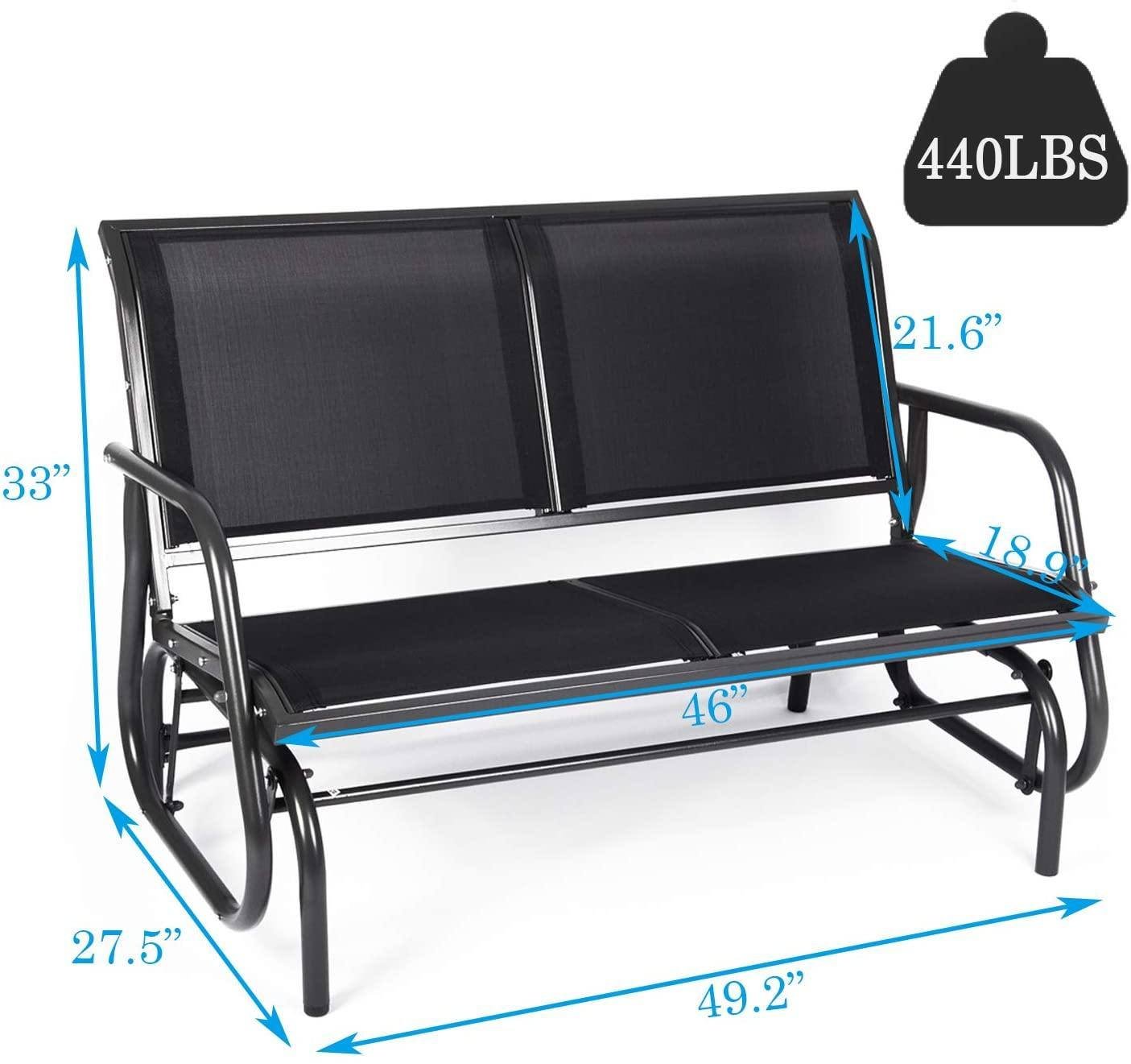 Large sitting space: 46" (L) x 18.9" (W); This glider bench chair can swing two people with ease and give you ultimate outdoor relaxation.