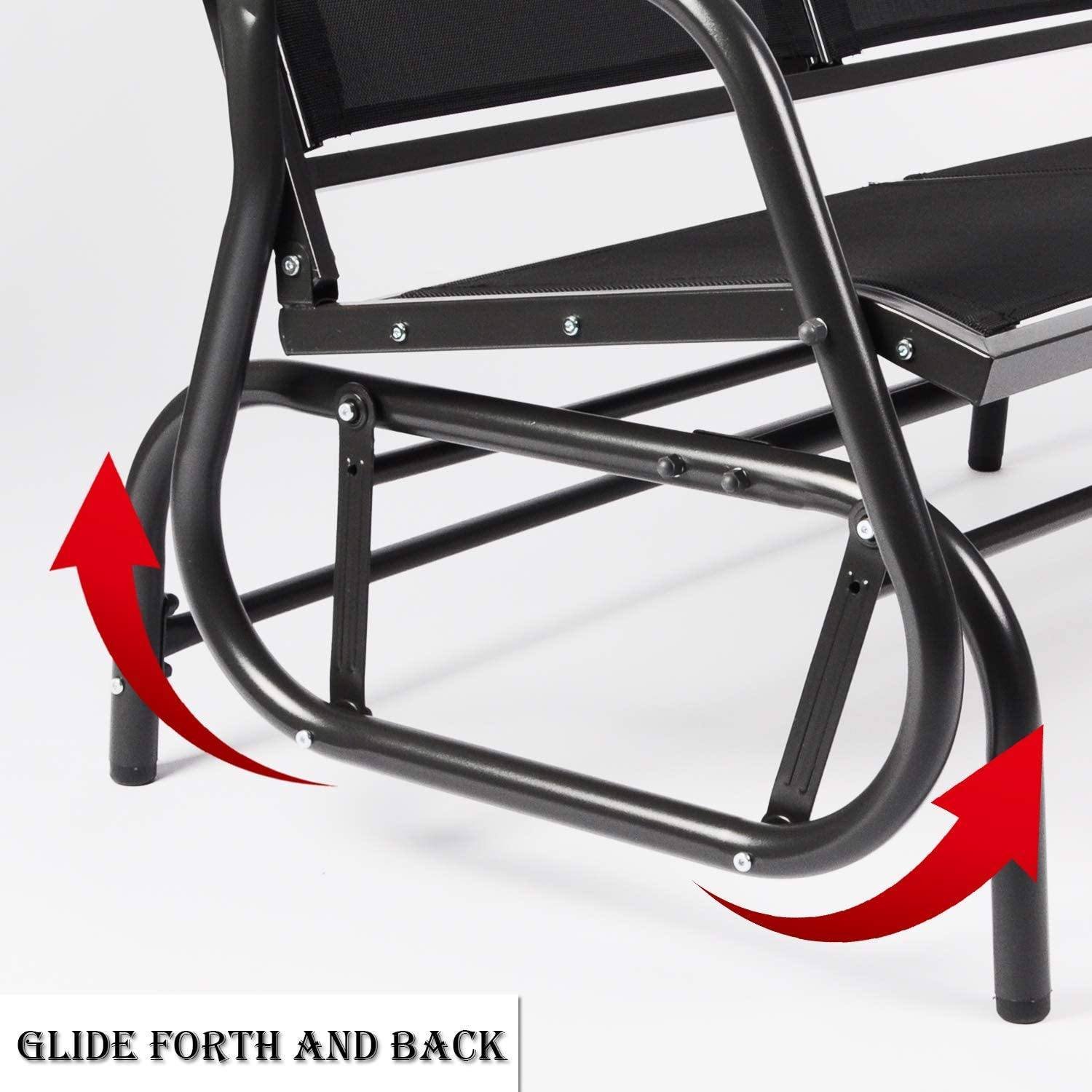 2.Large sitting space: 46" (L) x 18.9" (W), This glider bench chair can swing two people with ease and give you ultimate outdoor relaxation.
