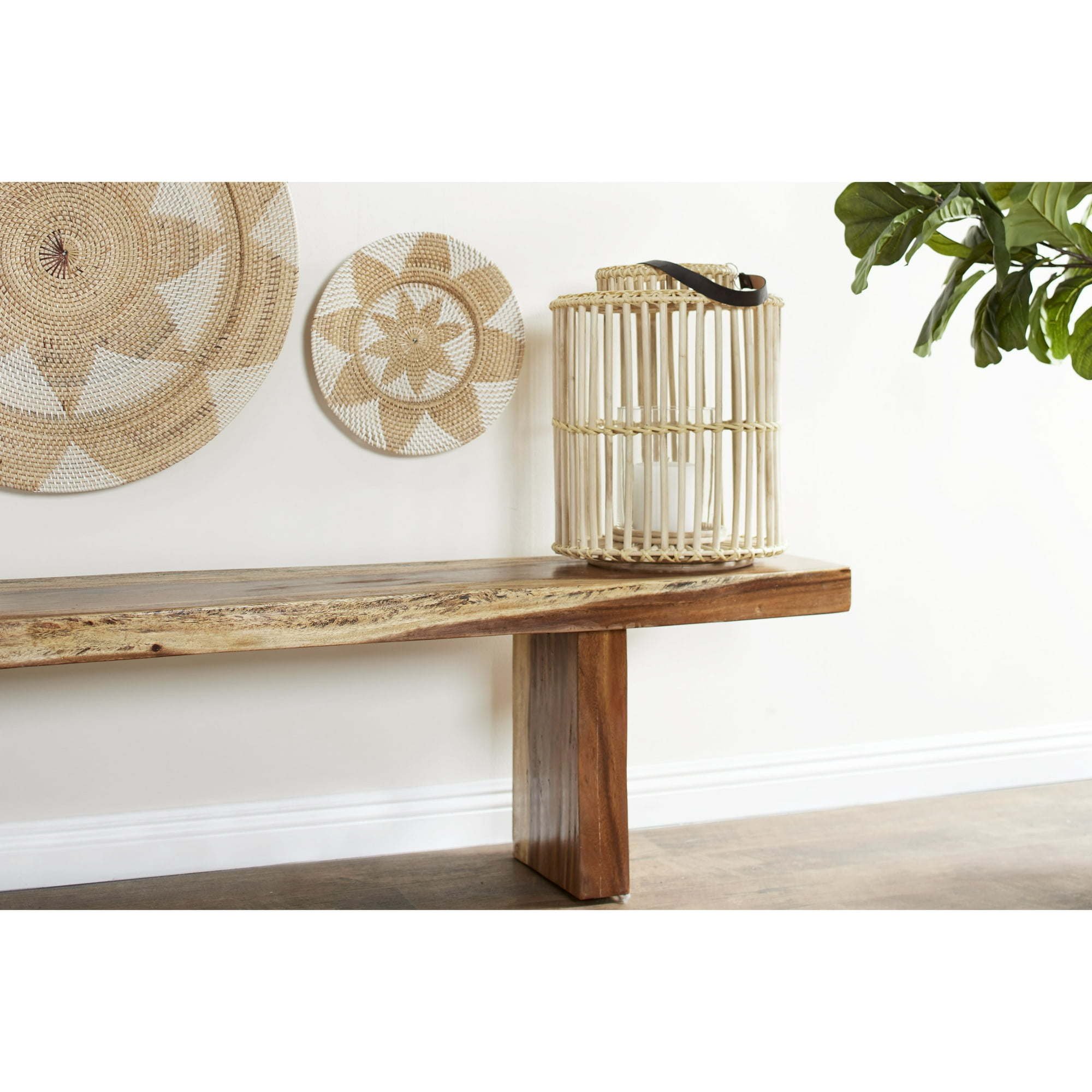 DecMode 14"W, 18"H Coastal Lantern, Light Brown, 1 - Piece is a unique addition to your stylish home. Infuse your space in the romantic candlelight glow that emits from this light brown rattan and leather candle lantern for home. Delight your guests and make any occasion extra special by adding a lighted or flameless candle to this lantern. Made with a sturdy base, it is perfect for creating an elegant atmosphere at your table top or mantel. This item comes shipped in one carton. Works as hanging or table top lantern. Suitable for indoor use only. Made in Indonesia. Coastal design. This lantern style candle holder can accommodate 1 pillar candle.