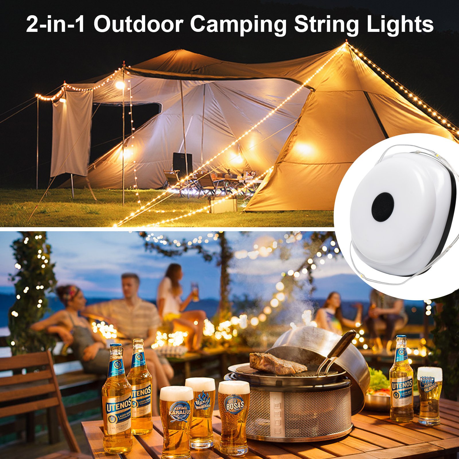 • 【Advanced Camping Light】Witness the unparalleled lighting flexibility with this 2 in 1 Adventure light that merges a camping lantern and string light into a compact, sleek unit. The 35ft long outdoor string light not only brightens your tent, but also adds a cozy ambiance to your outdoor adventures.
