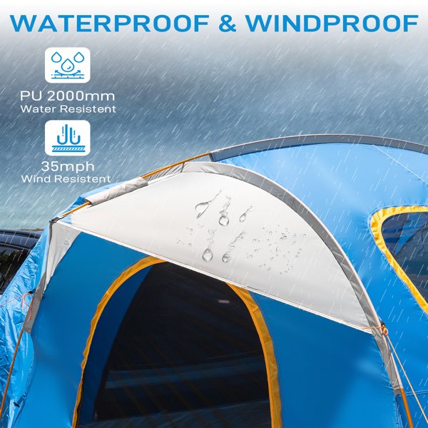 SUV Camping Tent, Outdoor SUV Tent with Double Doors for 5 Person, Waterproof PU2000mm Double Layer Tent for Outdoor Travel, Blue & Gray