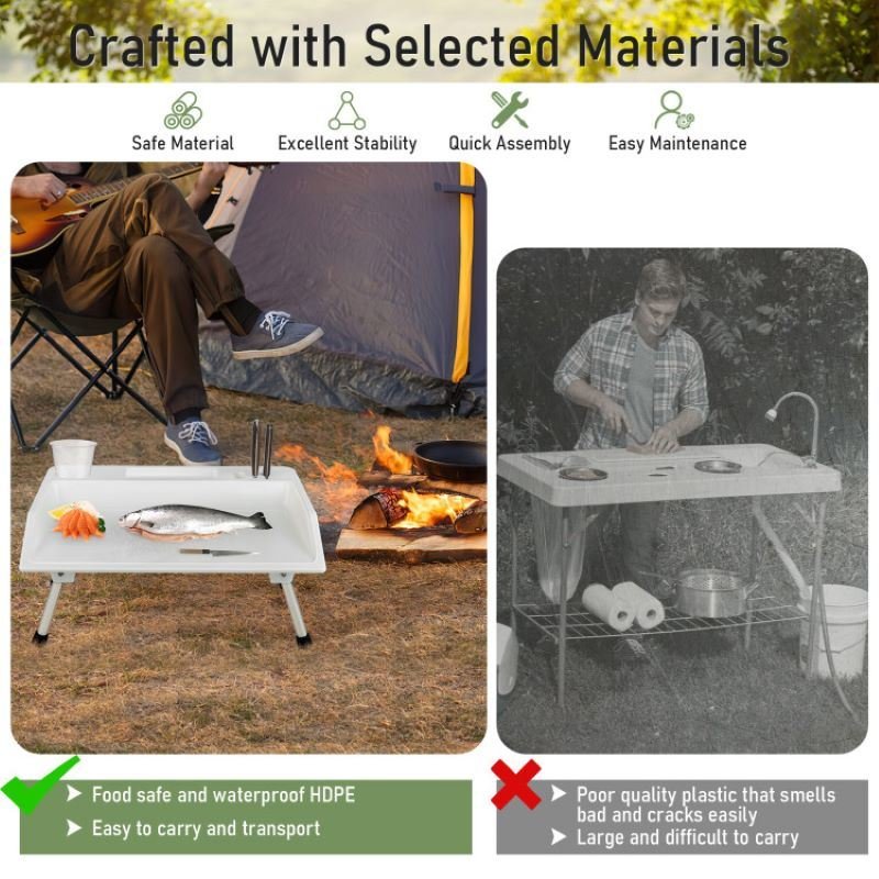 The ultra-lightweight fish cleaning table can easily be carried anywhere.